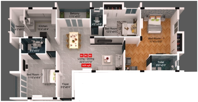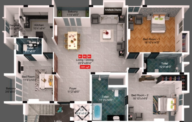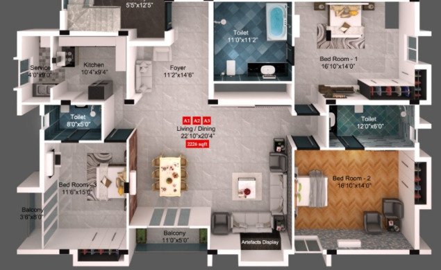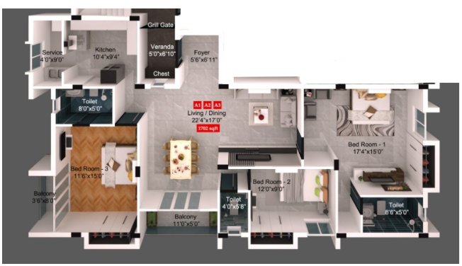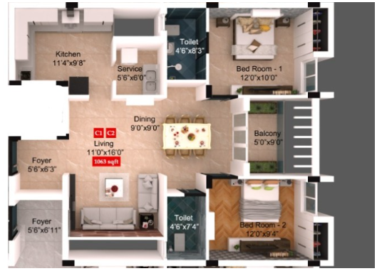Abhimanyu Garden Chellappas Plot 29 in Kanathur, located in the residential areas, connects all the major locations nearby in an easy way. Each residential apartment is developed with a unit size ranging from 1063 sq ft to 2226 sq ft. Every space in the residential unit is well-designed and developed perfectly.