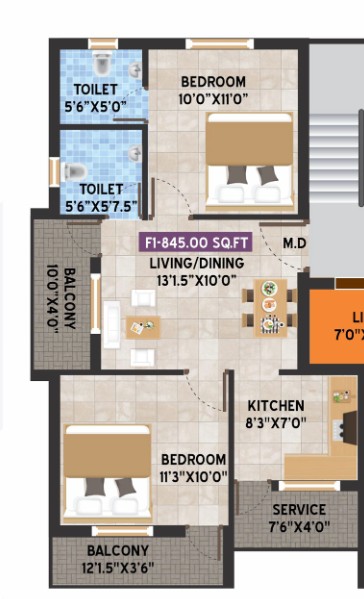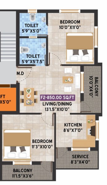 Unit sizes of the ACS Elite ranges from 845 - 850 Sq.Ft .