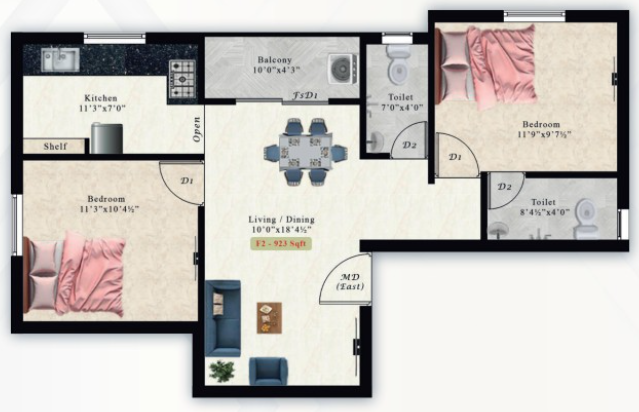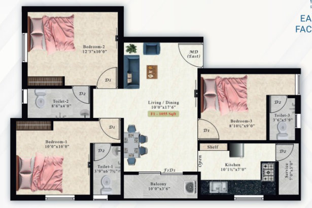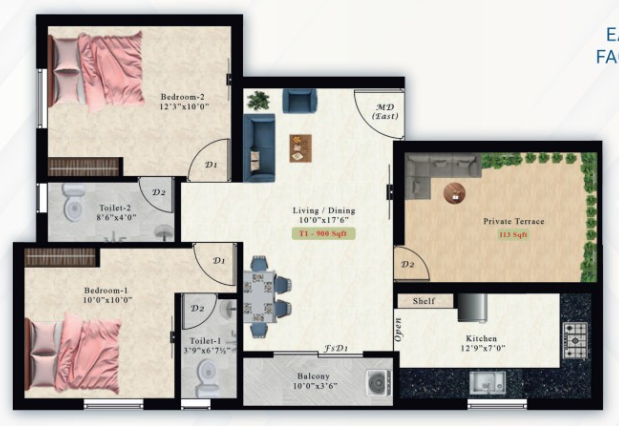 These residences are designed with unit sizes ranging from 868 sq ft to 1055 sq ft, where every space is well maintained and properly distinguished for a perfect home setup. The entire community is under CCTV surveillance, which always makes the residents feel safer.