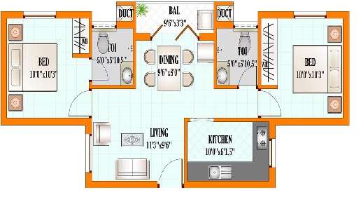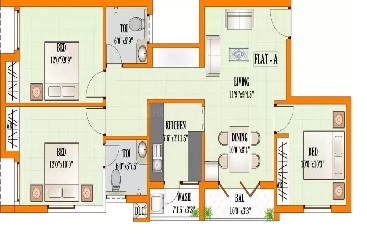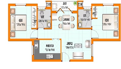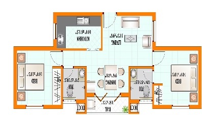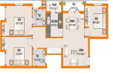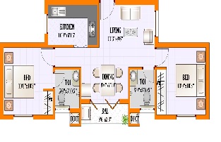 24” x 24” Vitrified tiles flooring for living, dining and kitchen Colored glazed tiles in toilet interior walls from the ground upto 7” height.