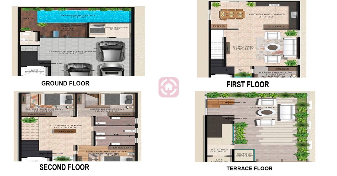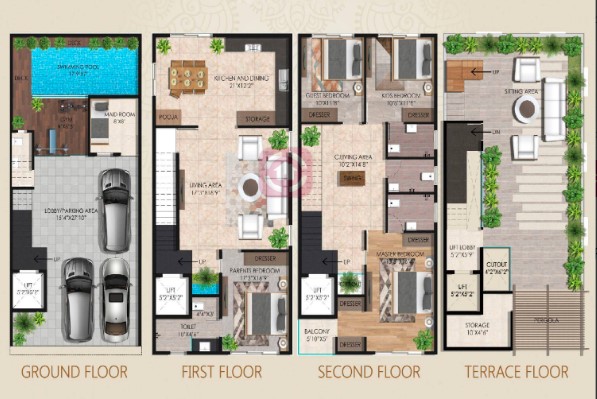 • Car parking areas will have outdoor tiles flooring.