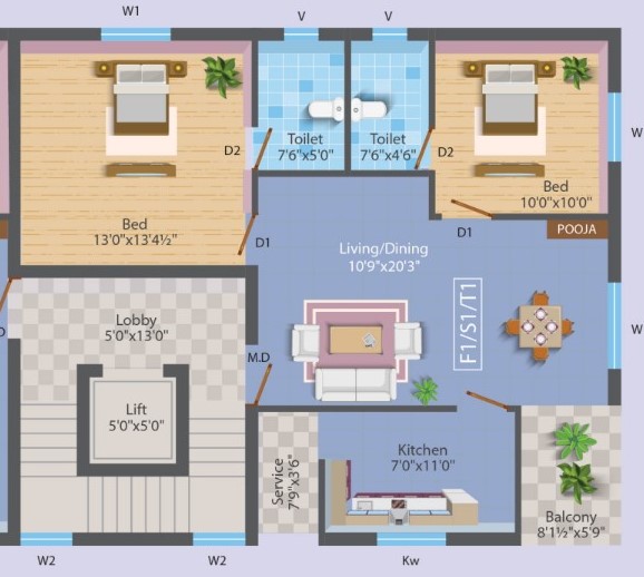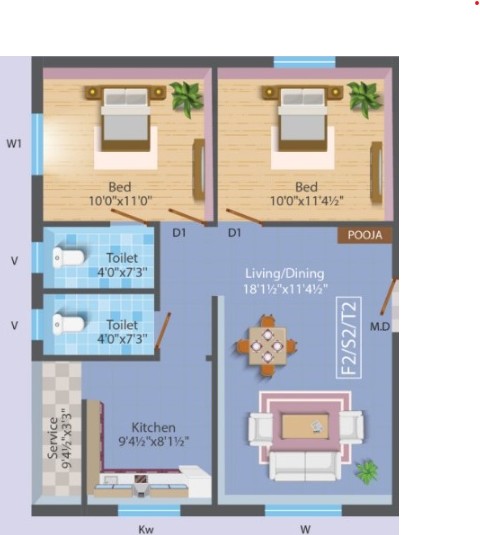 Unit sizes of the Arunachaleswar Enclave ranges from 905 - 1050 Sq.Ft .