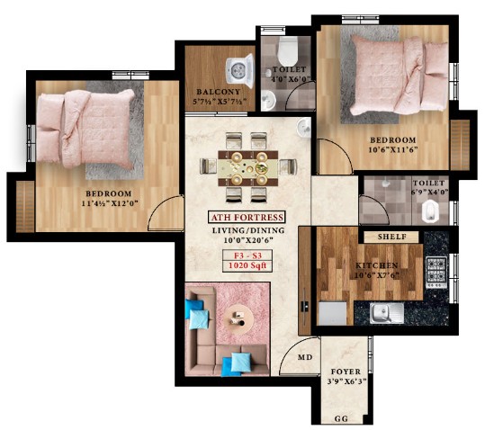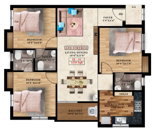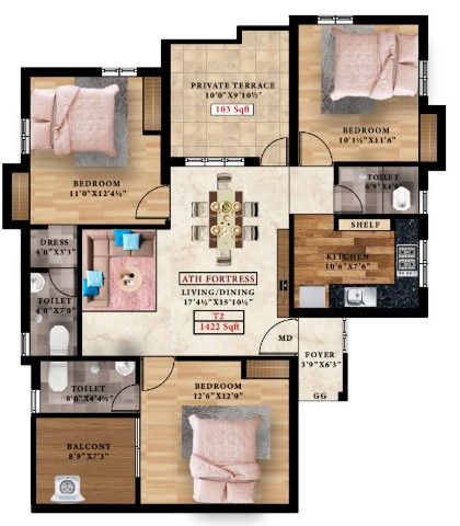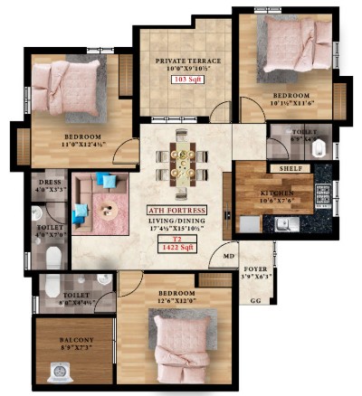 ATH Fortress doesn’t demand attention. It offers steadiness instead. A single block tucked into the everyday hum of Pammal, holding 8 homes across Ground plus 3 floors. It feels considered,not for scale, but for sense. The 2 & 3 BHK flats here range from 880 to 1430 sq. ft., and every inch respects purpose. No wasted corners. No exaggerated spans. Just space that carries its weight, shaped to move with you,whether it’s morning rush or a slow Sunday.