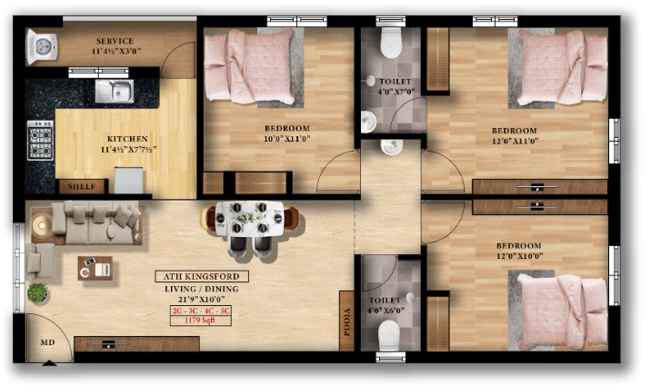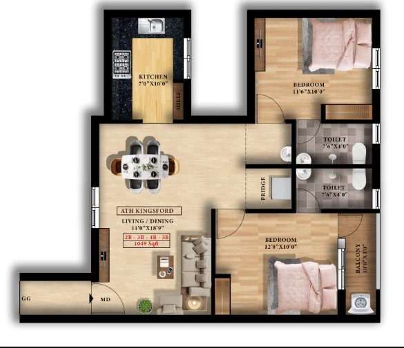 Split air conditioning provision with electrification will be provided in the living room cum dining and all bedrooms.