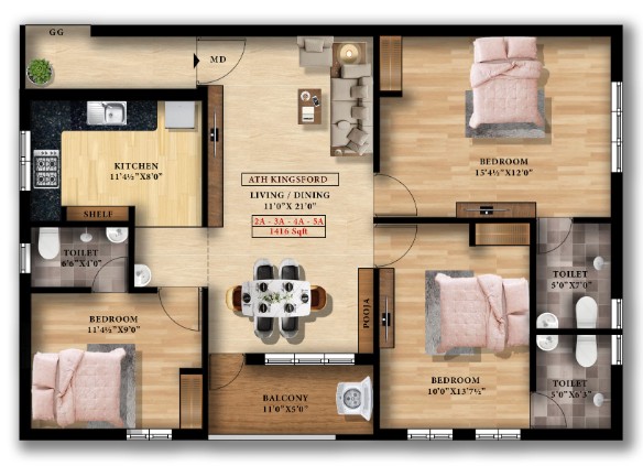 15A plug points will be provided for the refrigerator, washing machine and micro-oven.