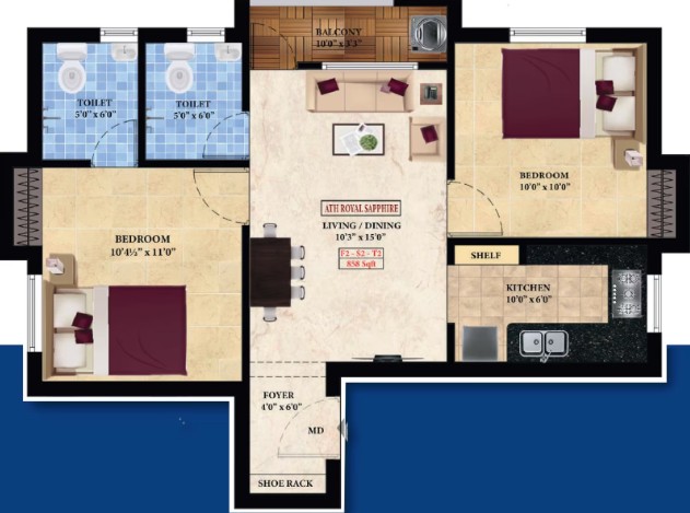 ATH Royal Sapphire rests in the quieter pockets of Pammal, offering something rare in a city that often builds too big,just six homes, shaped with simplicity and intention. A single block. Ground plus three floors. And a layout that feels immediately livable. The 2 & 3 BHK flats, ranging from 858 to 1213 sq. ft., are sized just right. Not oversized. Not underdone. Just... right. Rooms flow in a way that supports how most of us move through our days,morning rushes, quiet dinners, the in-between. No extra walls for the sake of it. No confusing corners. Just clarity.