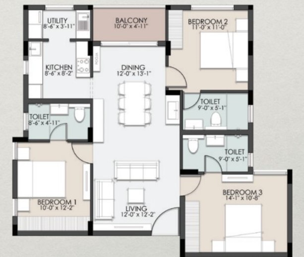 Unit sizes of the Aurelia ranges from 975 - 1920 Sq.Ft .