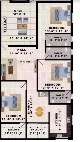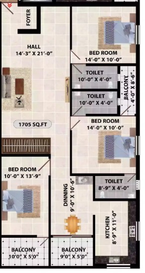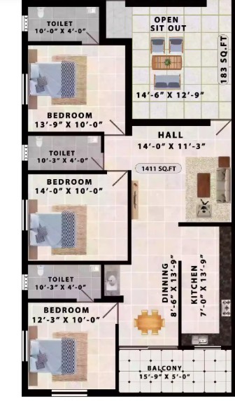 Unit sizes of the Avittam Adiyogi Thiruvanmiyur ranges from 1411 - 1705 Sq.Ft .