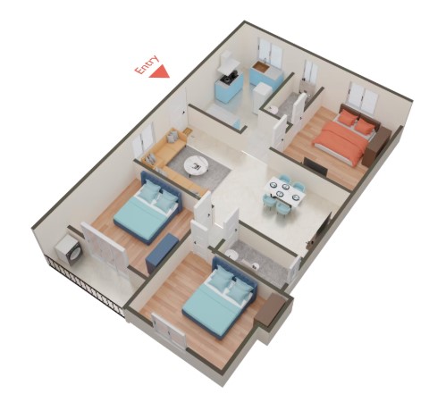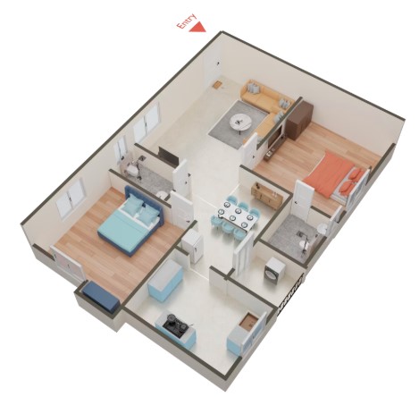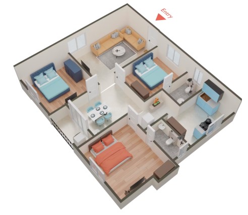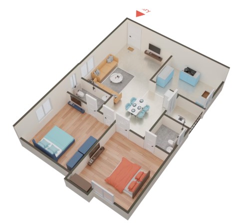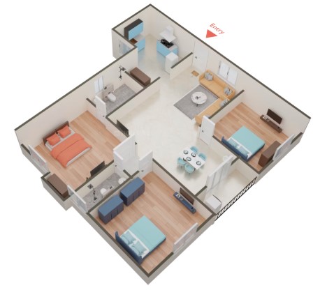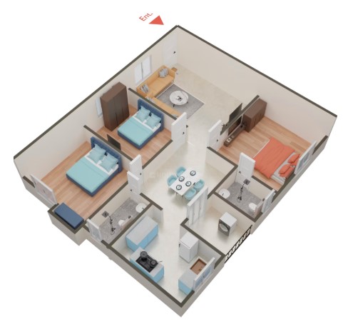 Unit sizes of the Ayyan Achyut ranges from 1008 - 1265 Sq.Ft .
