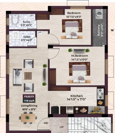 It’s a single block, 3 floors high, housing just 6 units in total. The whole place leans towards being quiet and personal, not some 100-flat maze where you don’t even know who lives next door. Every home here comes in at 956 sq.ft, which is decent space for a small family or even a single owner who wants a bit more breathing room.
