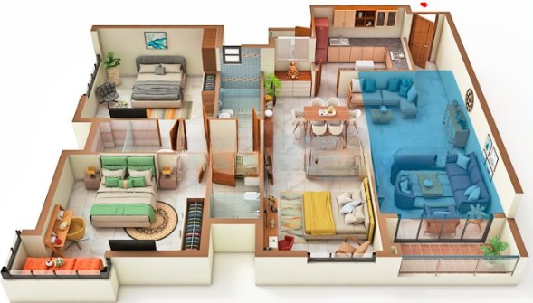 Sanitary & Bath FittingsEWC and wash basins in all bathrooms of Kohler / equivalent Makes, above counter in bedrooms & dining and wall mounted in common toilet