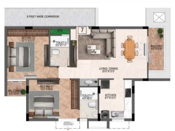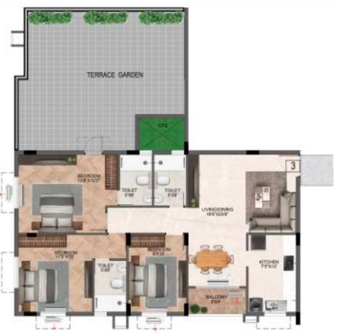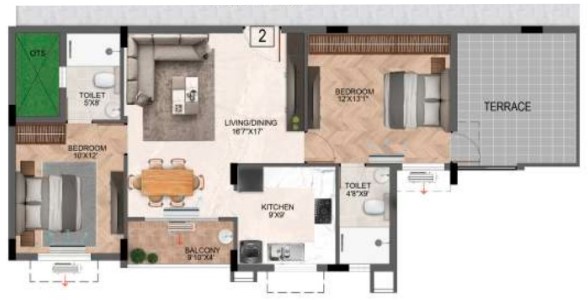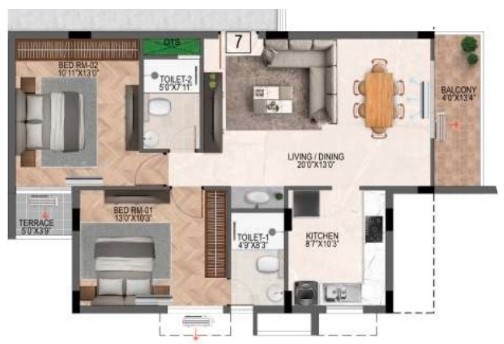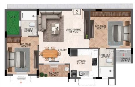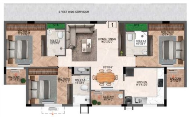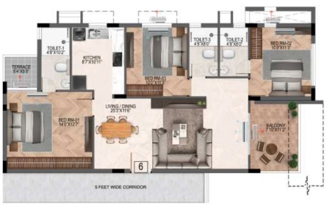 Unit sizes of the Bliss By Urban Tree ranges from 1056 - 1609 Sq.Ft .