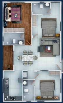 Drawing, Dining, Bedrooms and Kitchen: 600*1200mm Premium Vitrified Tiles.