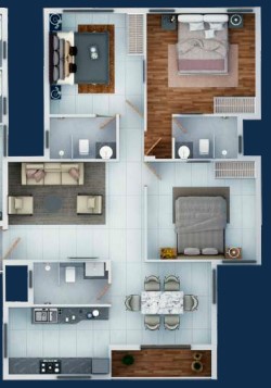 Balconies: Wooden plank tiles 195*1200mm.