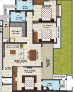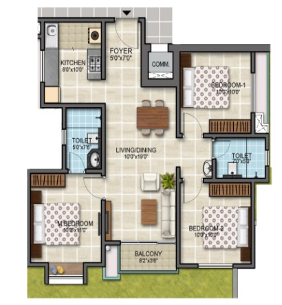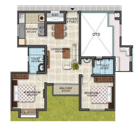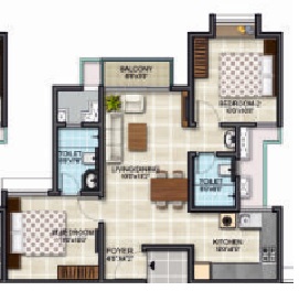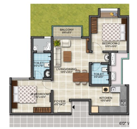 With 581 well-crafted units, the 2 and 3 BHK flats range from 885 to 1650 sq. ft., respectively. The individual size range for 2 BHK is about 885 to 910 sq. ft., and for the 3 BHK, it's about 1080 to 1650 sq. ft. It indicates you get maximum space and also ensures fresh air and natural light.