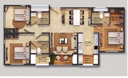 Unit sizes of the Brigade Residences ranges from 1793 - 3746 Sq.Ft .