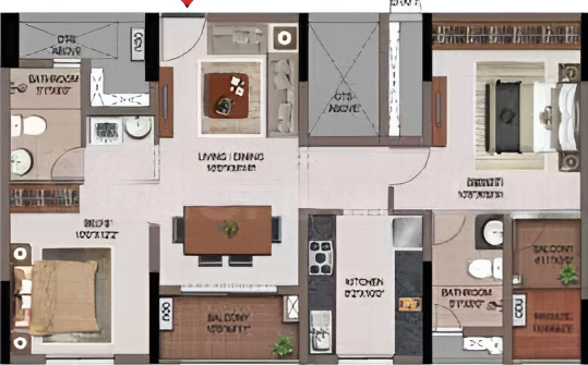 Spilt – air conditioner: Point will be provided in Living & all bedrooms.