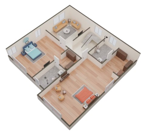 Internal walls: Finished with 2 coats of putty, 1 coat of primer & 2 coats of premium emulsion