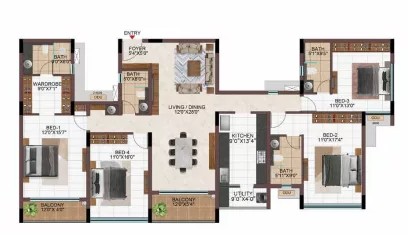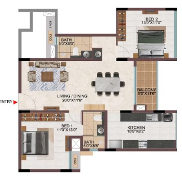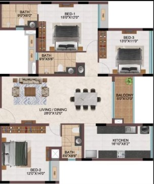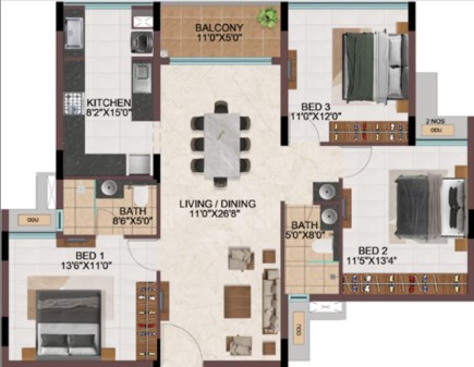 BEDROOMS & KITCHEN Vitrified tiles of size 600x1200mm