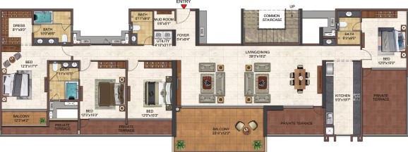 Foyer, Living, Dining, Bedrooms & kitchen : Vitrified tiles of size 600x1200mm