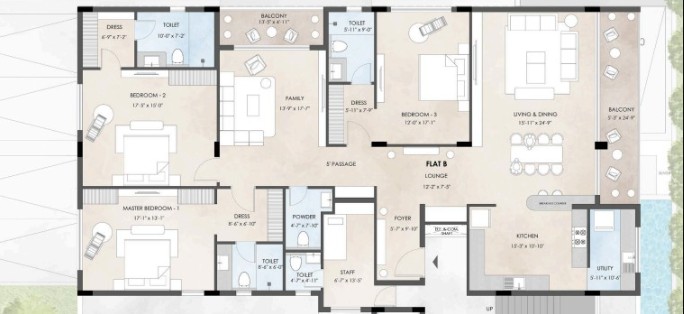 Unit sizes of the Chaitanya Evergreens ranges from 3020 Sq.Ft .