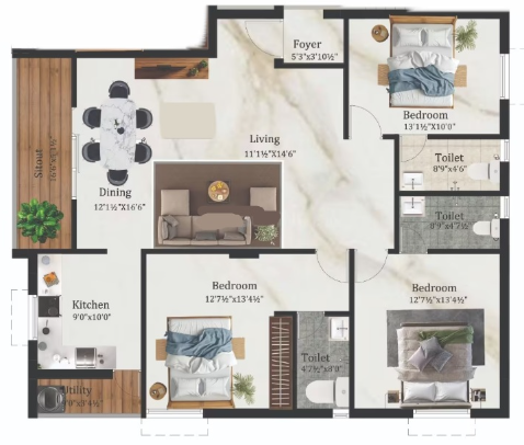 A home sweet home never makes you do things in a hurry; it rather grants you the time to breathe. Charan Divine, located at Perungalathur, Chennai, crafted by MS Charan, attracts families to a distinction of tranquil places and everyday comfort. The apartment complex of stilt plus three floors contains only 8 flats that each provide the resident with privacy, openness and laid backs lifestyle. Buildings of this kind have only low density, which directly corresponds with the relaxed lifestyle. The spacious homes with 2 and 3 BHK options and sizes from 958 sq ft to 1,742 sq ft. Planned in such a way that daily life can be simple and enjoyable, no matter if you have busy mornings or quiet evenings. Life at Charan Divine in Perungalathur is easy and cosy.