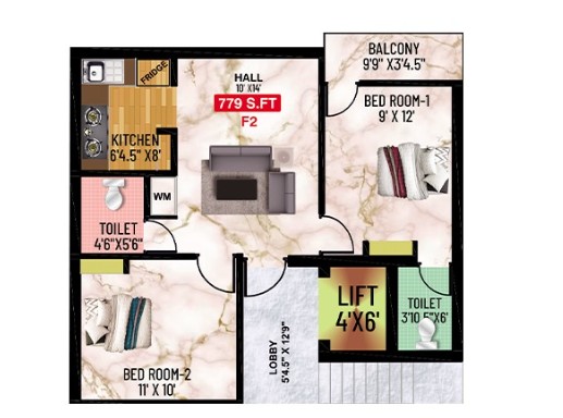 Unit sizes of the Crest Kenzo ranges from 473 - 1034 Sq.Ft .
