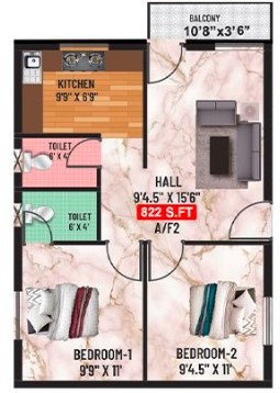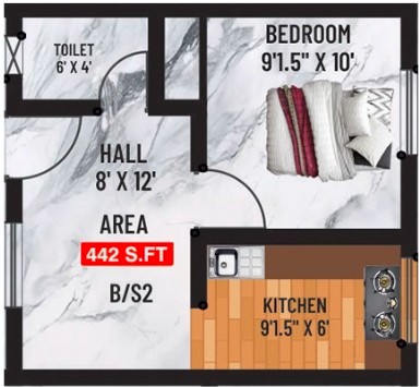 Unit sizes of the Crest Majesta ranges from 442 - 1005 Sq.Ft .