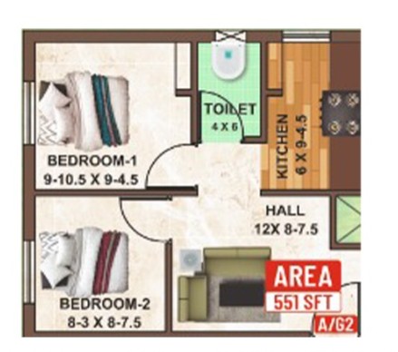Unit sizes of the Crest Quinn ranges from 415 - 551 Sq.Ft .