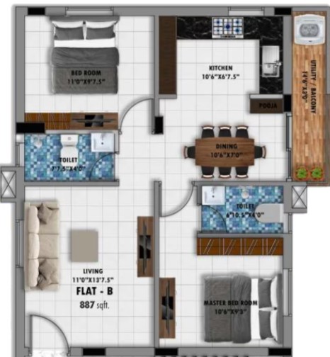 Crystal in Alwarthirunagar, from Karuppaswamy Builders, is one of those compact residential setups that feels more personal than packed. You're not walking into a sea of 100+ flats here,just 8 units total. All tucked into a single block that rises ground plus four floors high. It’s not a gated township feel, and that’s kind of the point,it stays local, familiar, and way less overwhelming. This project brings only 2 BHK units, but they're not tiny. The apartments fall in the size range of 887 to 946 sq.ft, which gives enough breathing room for a small family or even a working couple who needs that extra space for a home office. Being in Alwarthirunagar, you're in a residential part of the city that’s already well-established,close enough to reach everything, but not choking with traffic and crowds.