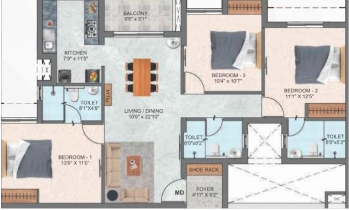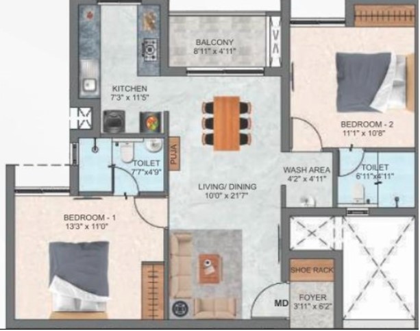 SPLIT A/ C provision with electrification will be provided in the Living room, dining and in all bedrooms. 15 A plug point will be provided for the Refrigerator, Washing machine and Micro- oven.