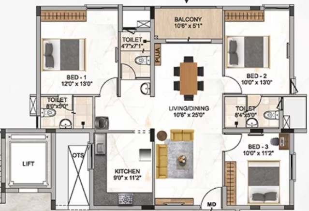 The apartments at DAC Napa Valley are spread across Stilt + 5 Floors, with 2 and 3 BHK options that feel open, practical, and inviting. The layout is comfortable without being cramped. Natural light fills the rooms, the kitchen flows well into the rest of the space, and everything from flooring to fixtures has been chosen with real homes in mind. The architectural design is modern. It's neat, simple, minimal, and peaceful.