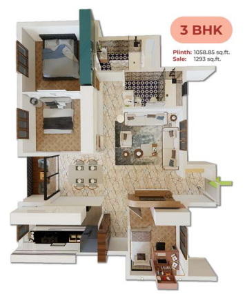 Unit sizes of the Devinarayan Vasantham ranges from 932 - 1293 Sq.Ft .