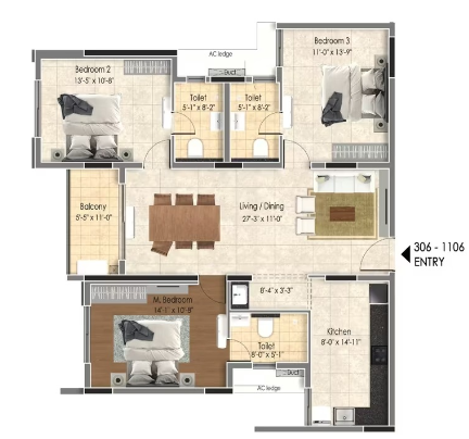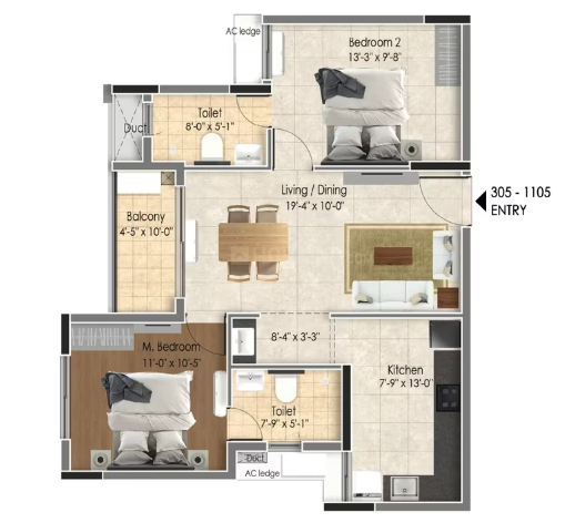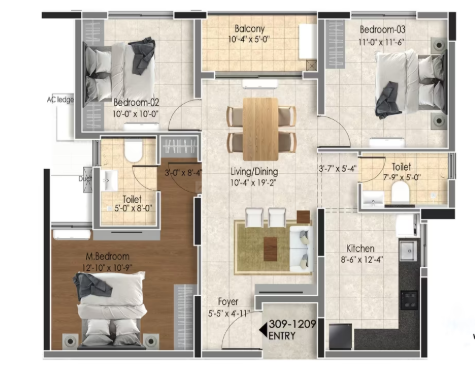 Provision for TV in living and master bedroom with pre-wired co-axial cable for DTH easy connectivity.