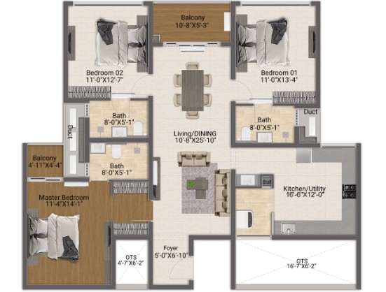 Unit sizes of the DRA iHeart ranges from 1595 - 2927 Sq.Ft .