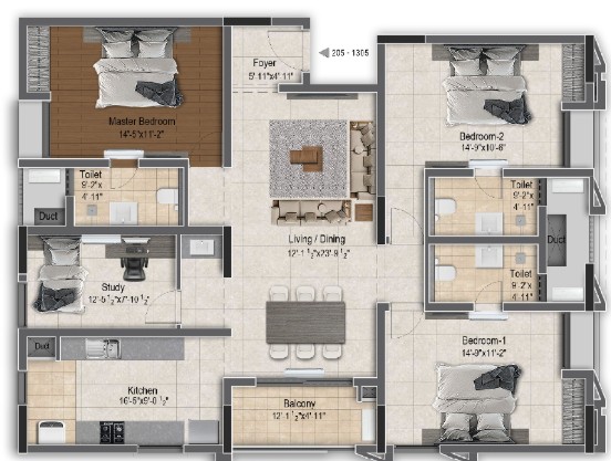 Bedroom doors:Pre-engineered laminate finish flush door with architrave , ironmongery like door lock, tower bolt, magnetic catcher will be provided