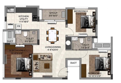 Unit sizes of the DRA Trinity ranges from 1238 - 1434 Sq.Ft .