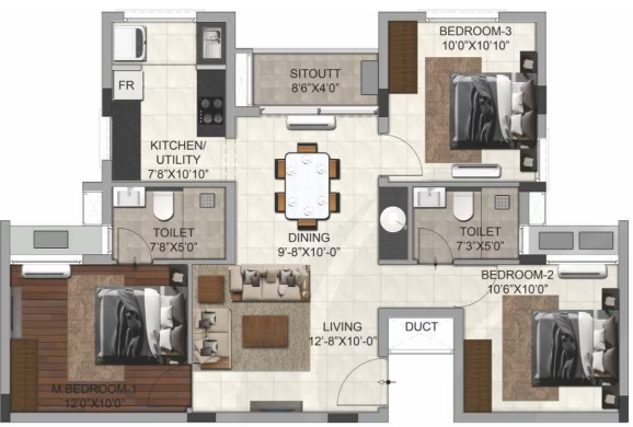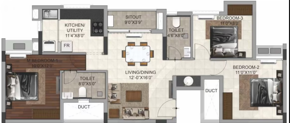 Unit sizes of the DRA Trinity ranges from 1247 - 1287 Sq.Ft .