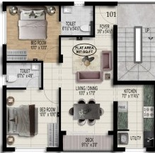Unit sizes of the Ebony ranges from 907 - 1350 Sq.Ft .