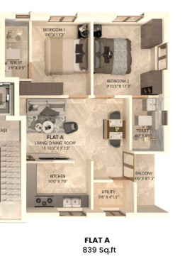 Unit sizes of the Emerald Enclave ranges from 839 - 849 Sq.Ft .