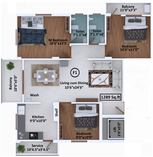 Tired of a double-bedroom house and looking for an upgrade? Fantazy by Yellow Homes Builders and Promoters is changing the landscape of Madipakkam, Chennai. It’s a community built on 0.05 acres for a mid-range lifestyle. The 3 BHK configuration is perfect to change your life, as you get extra space to pursue your dreams. The experience of a new living standard hits differently, as you need courage to make a big move. But the comfort in the atmosphere enables you to adapt to the place. Every inch of Fantazy in Madipakkam feels surreal, especially if you’ve waited for so long to be in a place that feels like an answered prayer. The unit sizes are spaced out, ranging from 1220 sq. ft. to 1289 sq. ft. You will get more space to walk freely and live healthily with proper ventilation. As a fast-growing residential locality, families feel safe to choose this place. And this also makes commuting accessible for the 6 units.