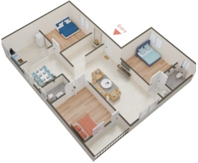 The homes come in 2 & 3 BHK formats, ranging between 662 to 1395 sq. ft.,a mix that welcomes both early buyers and growing families alike. The layouts are clean. The spacing, thoughtful. No towering structures or overcrowded amenities. Just honest living, tucked into a wide, open plot.