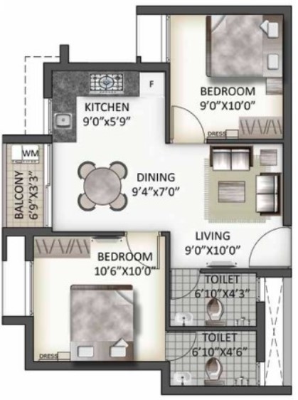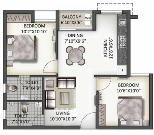 The flats come in 2 and 3 BHK configurations spread across 1.35 acres with unit sizes ranging from 840 – 1270 sq.ft. Each apartment is developed to maximize the space across the area, offering open space. It’s ideal for people who need everything from daily needs to weekend entertainment. With 2 blocks and 5 floors (Stilt + 4 floors), the layout promises better ventilation and lower density, providing an intimate and calm living experience.