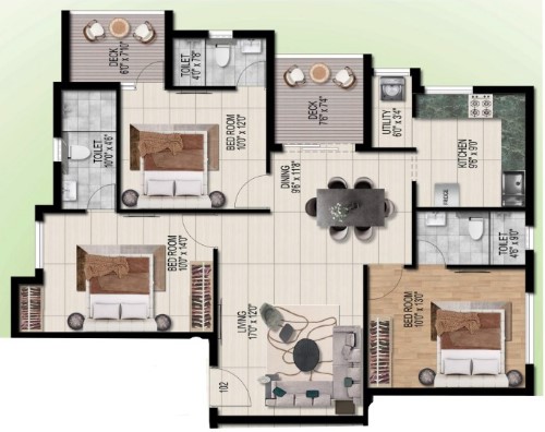 It comes with unit sizes ranging from 1395 sq ft to 1436 sq ft, offering a massive space to accommodate a spacious living area. It also offers easy access to all the essential amenities that bring a comfortable lifestyle. With a terrace garden the residents can have a peaceful time to relax with their family members.