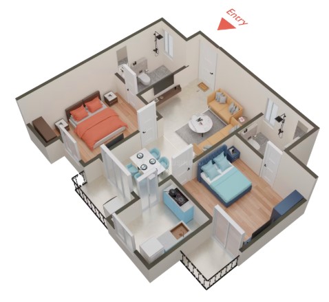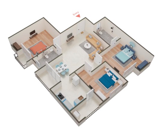 The main door shutter will be both side teak veneer flush door with waterproof polish.