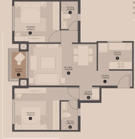 2 and 3 BHK configurations are designed with 18 floors (stilt + 17 floors), developed in size range from 1027 to 1556 sq. ft., which cater to different lifestyle expectations – whether a growing family in need of extra space, a newly married couple, a future investment, or resale. The unit size of 2 and 3 BHK ranges from 1027 to 1053 sq. ft. and 1258 to 1556 sq. ft., respectively.