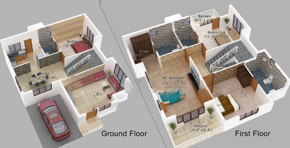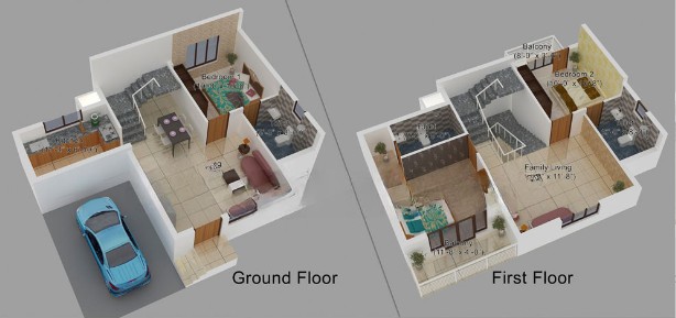The flooring in the bedrooms, kitchen will be of 2’ x 2’ vitrified tiles.