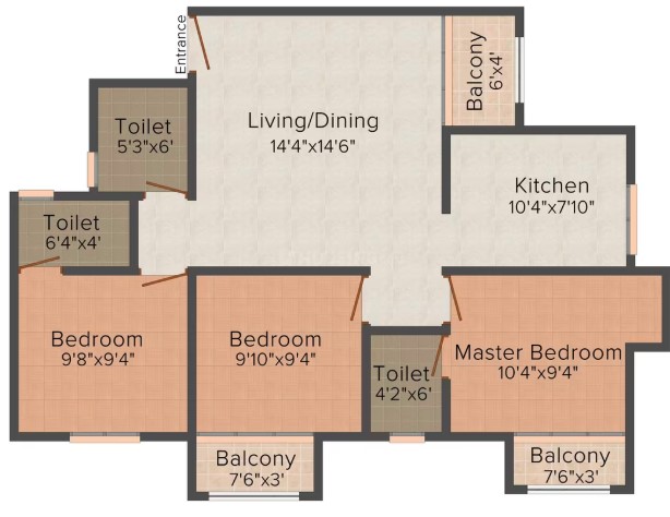 The flooring in the living, dining, bedrooms, and kitchen will be of Vitrified tiles.