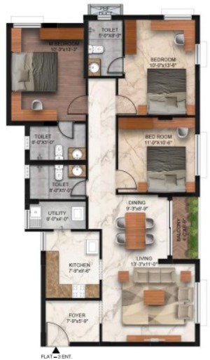 The size of each home? Right at 1330 sq.ft. So yeah, enough room for a family to actually live comfortably. Space for your stuff, your people, your routine. It’s got that functional layout,nothing wasted, nothing showy. Just clean, livable design. It’s built on a 0.20-acre plot in T Nagar, so while the project itself is small, the location makes up for it. You’re right near the action but not stuck inside the chaos. Good balance. You’re close to the shops, schools, hospitals,all of it,without feeling boxed in.