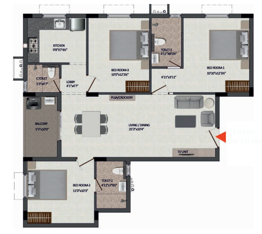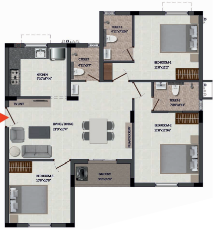 The apartment's lifestyle is, however, a big plus. Revitalise your day right at the gym, have a barbecue at the grand clubhouse, or just be still and enjoy the peacefulness and convenience of the beautifully designed surroundings that are only a short distance away. All you need is already there for you to take. You can choose a home from 1,243 sq ft to 1,328 sq ft where stories are being written, laughter is being shared, and each day is a new chapter in your family’s adventure.